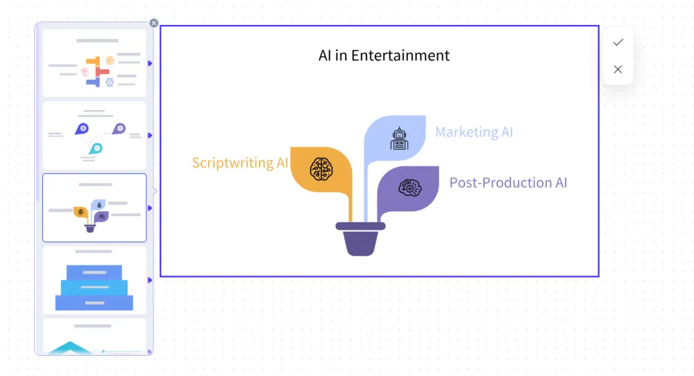 Hover或框选文本段落,点击段落左侧的生成按钮,就能快速将文本转为图表、信息图、流程图等视觉图片。您无需使用各类做图工具,就能获得多样的文本配图。
