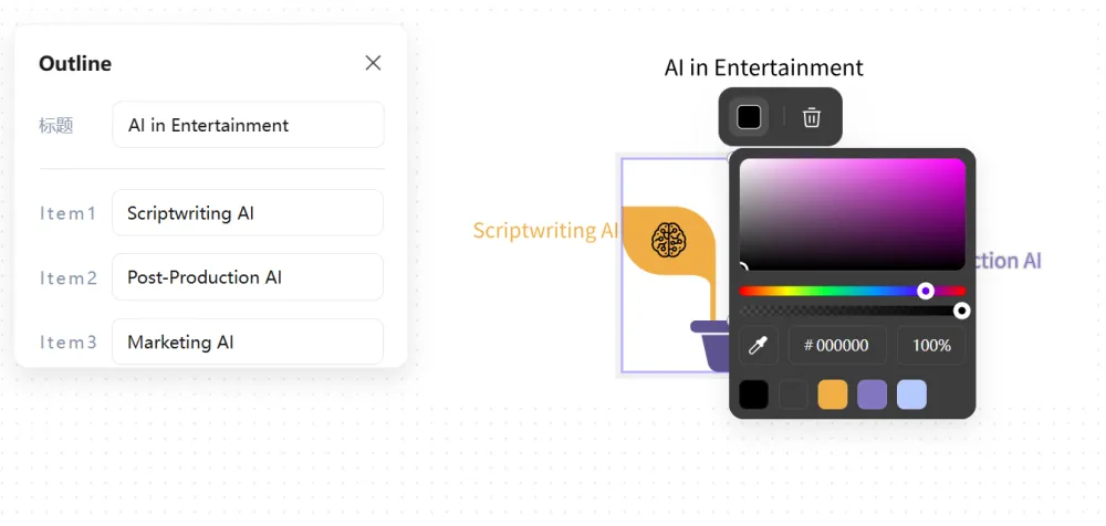 - 自定义编辑:PicDoc支持自由调整图表的颜色、字体、布局及图标。用户可根据个人喜好或品牌配色方案进行个性化设置。