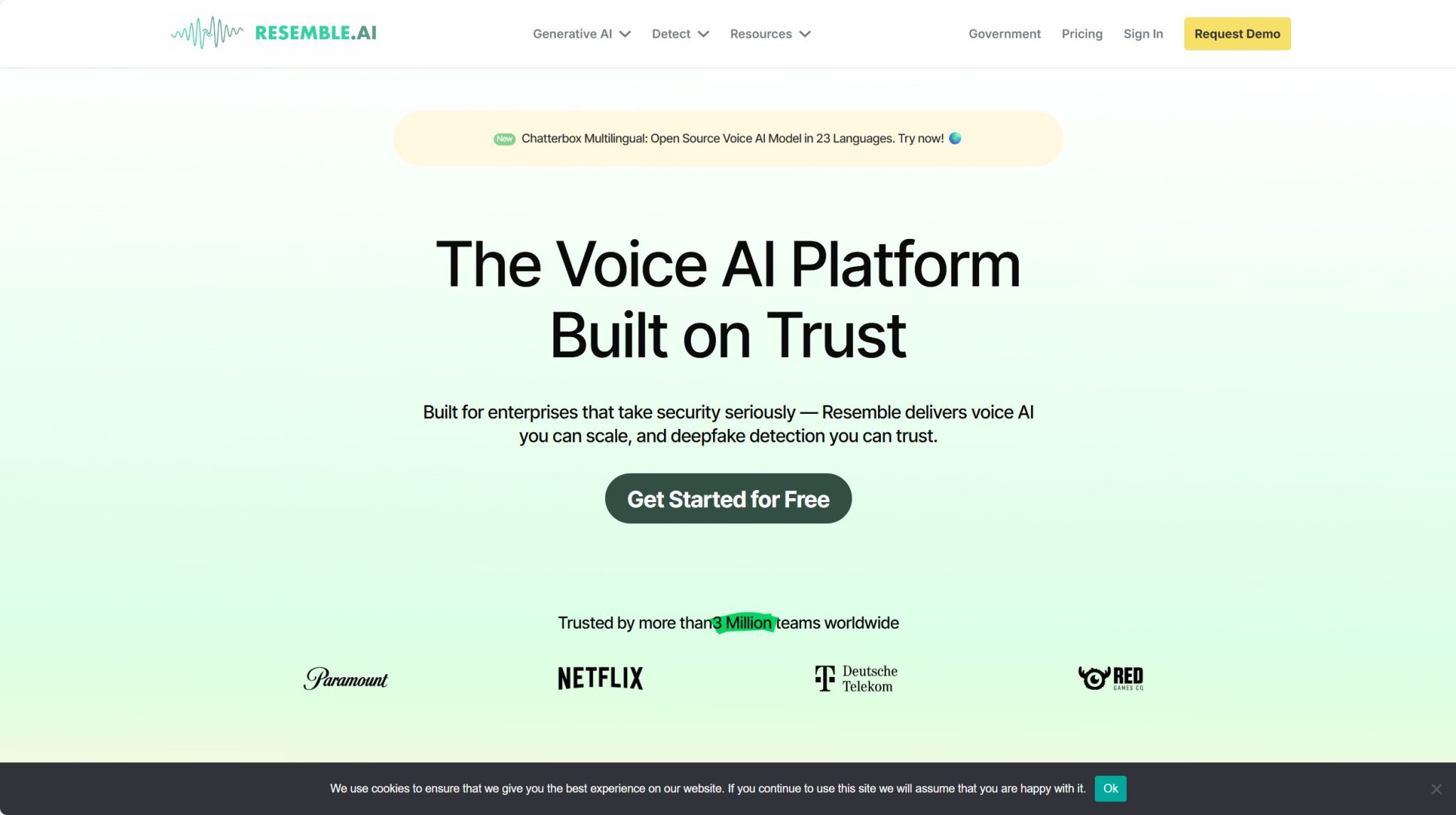 当生成式语音进入生产环境,可信度、实时性与安全合规成为关键瓶颈。Resemble.ai 将声纹克隆、TTS、STT、语音编辑与主动式 Deepfake 检测封装为一套可私有化部署的开发者栈,帮助企业在分钟级内搭建多语言语音能力,并在毫秒级内识别伪造内容。